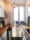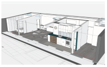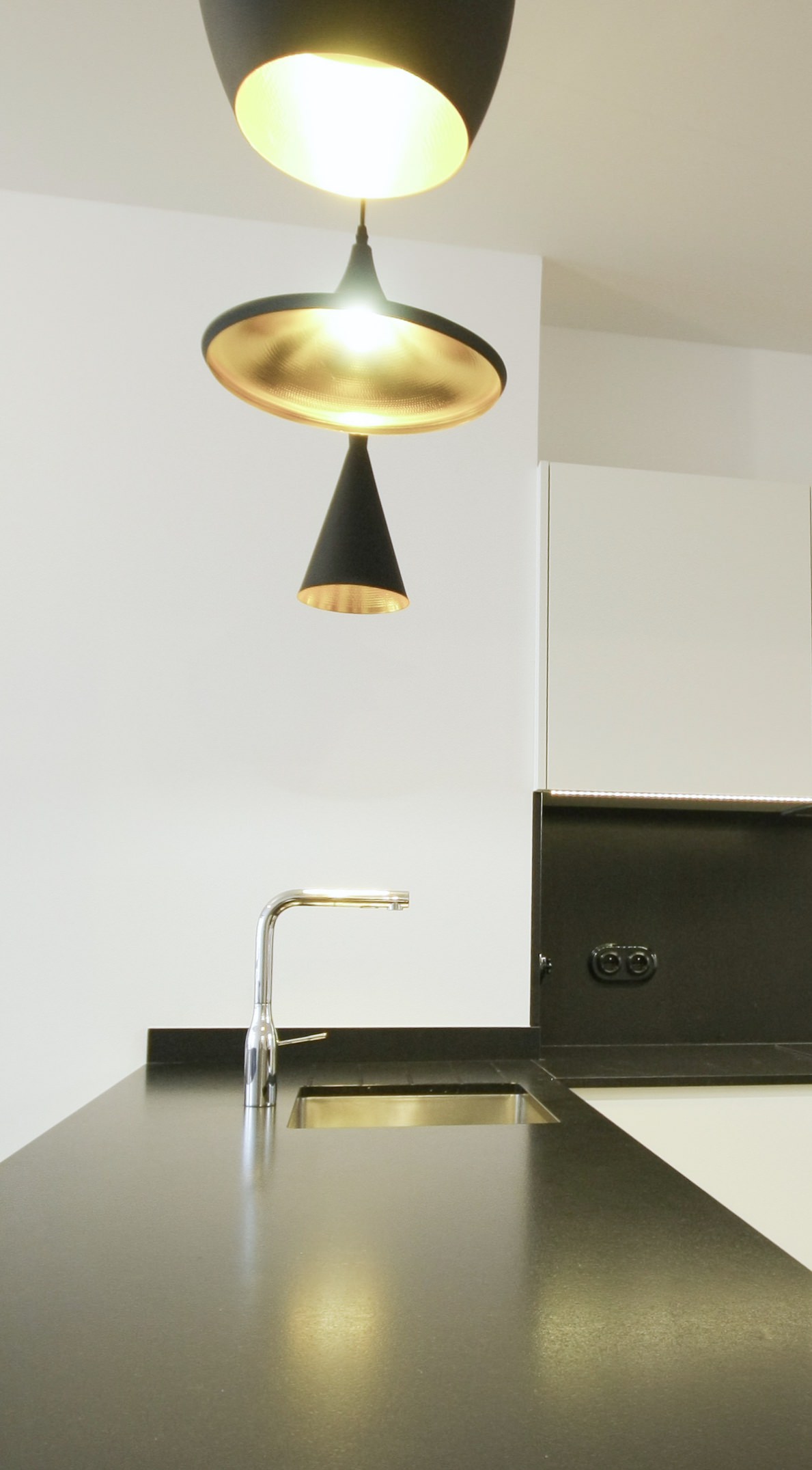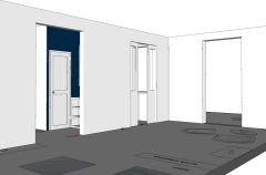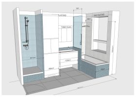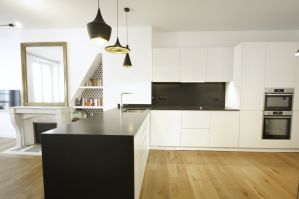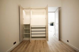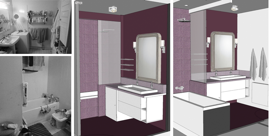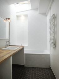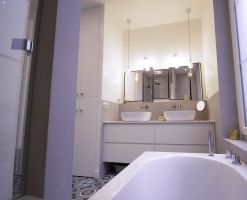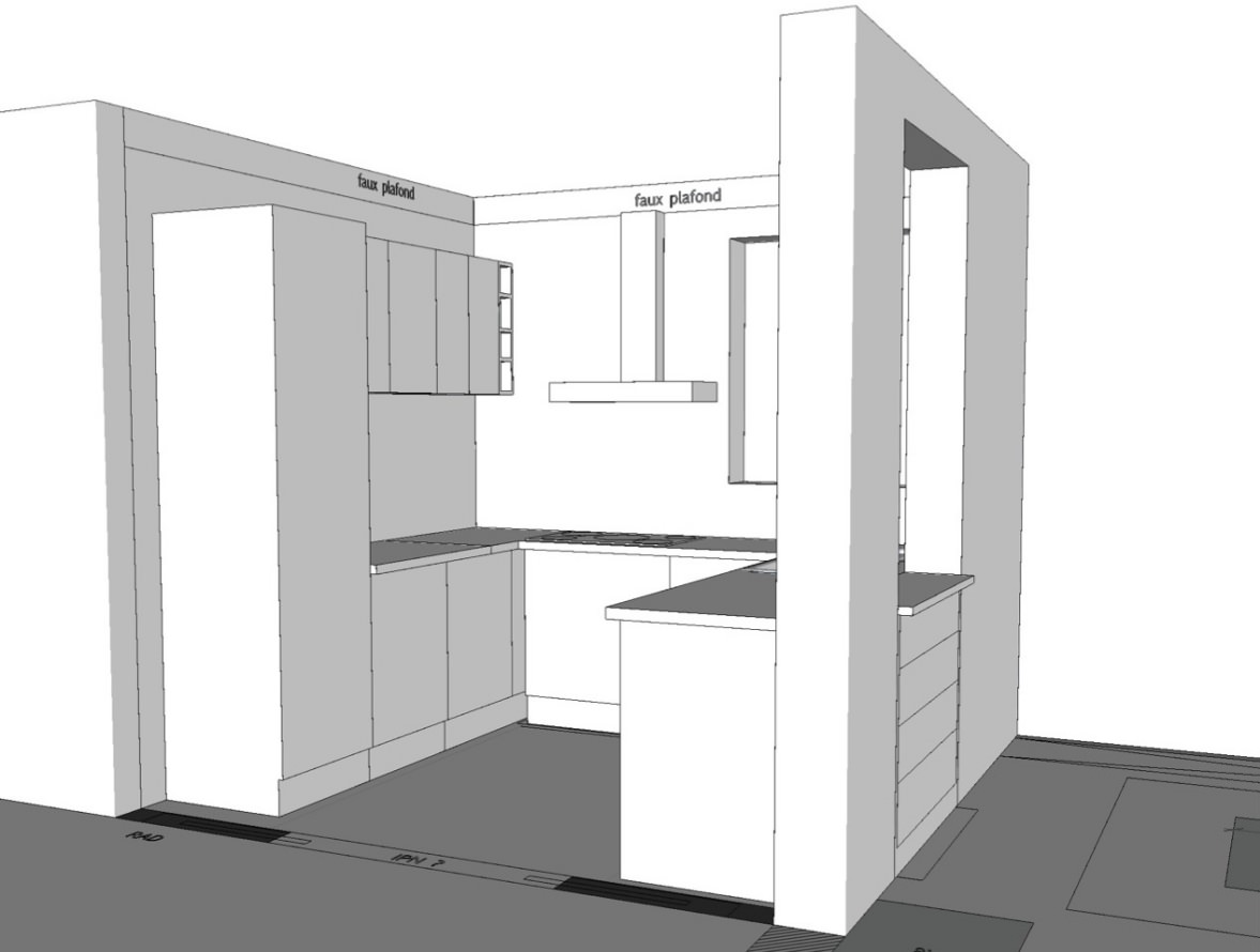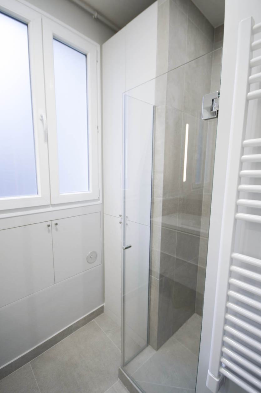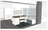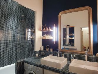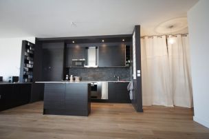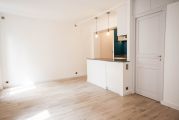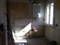 Transformation d'un 3 pièces en 2 pièces. Création d'une salle de bain dans la cuisine. Transformation de l'ancienne salle de bain en dressing. Création d'une cuisine ouverte.