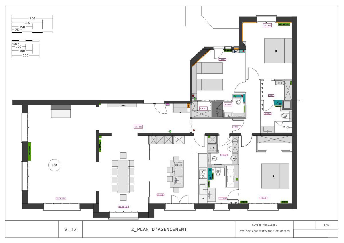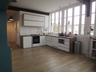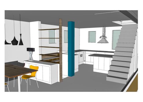 Pour un couple et 3 enfants : restructuration d'un plateau de 100 m2. Percement de 3 baies de souffrance, création cuisine ouverte, salles de bain et chambres.