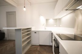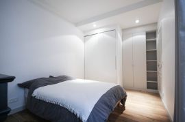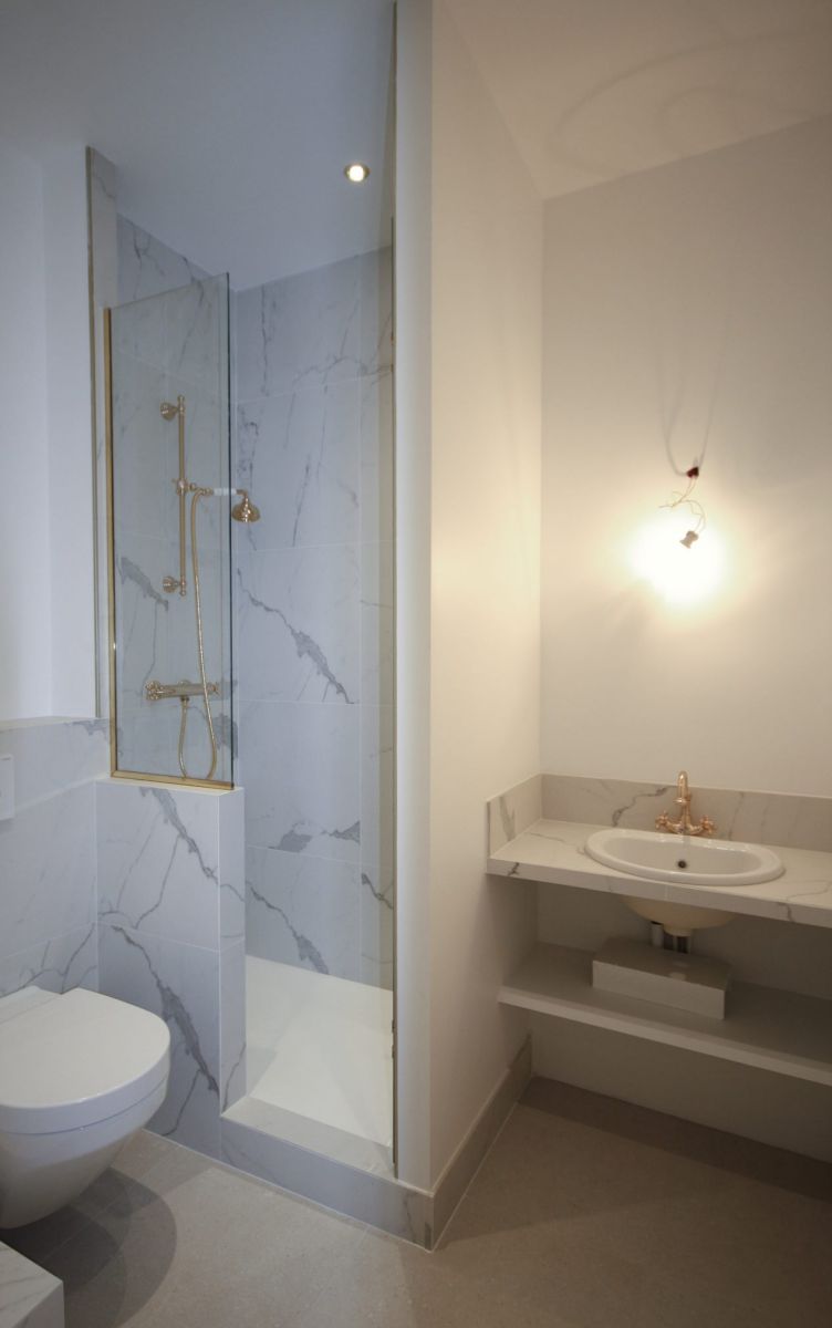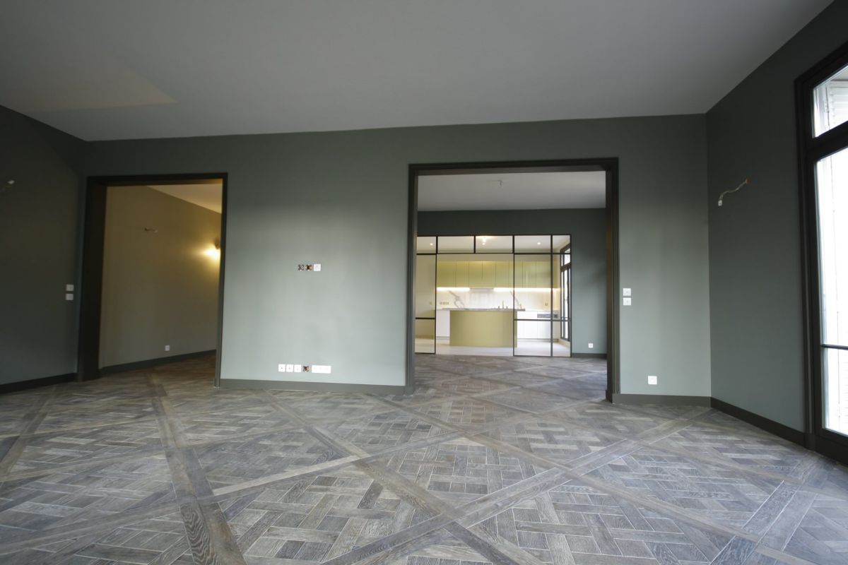 Pour une clientèle russe : création de pièces de réception en enfilades, séparées des 3 suites privatives, comprenant chambre, dressing et salle de bain attenants. Isolation phonique et thermique