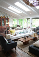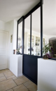 Coup de neuf pour une maison dans son jus depuis 30 ans : ouverture partielle de la cuisine sur le salon et reprise de l'atmosphère deco.